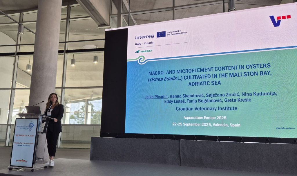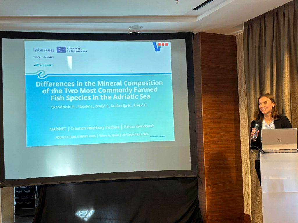 Djelatnice HVI-a, prof. dr. sc. Jelka Pleadin i Hanna Skendrović, mag. ing. techn. aliment., iz Laboratorija za analitičku kemiju, usmeno su izložile rezultate istraživanja u okviru Interreg Italija–Hrvatska projekta „MARINET – MARICULTURE NETWORK: Implementation of new technologies for diversified sustainable aquaculture targeting healthy society and competitive regions“. Dr. sc. Snježana Zrnčić i dr. sc. Ivana Giovanna Zupičić iz Laboratorija za bolesti akvatičnih životinja svoje su rezultate predstavile putem posterskih izlaganja.