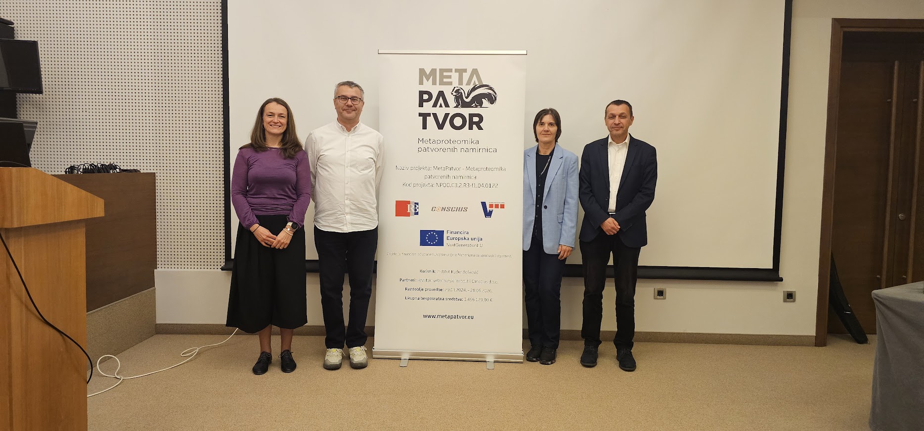 Predstavnice Laboratorija za određivanje rezidua dr.sc. Nina Bilandžić i dr.sc. Ivana Varenina kao suradnice na projektu, zajedno s dr.sc. Majom Đokić i doktorandicom Ines Varga, mag.appl.chem., te dr.sc. Doroteom Grbin iz Laboratorija za bolesti akvatičnih životinja, sudjelovale su na konferenciji projekta Metaproteomika patvorenih namirnica (MetaPatvor) NPOO.C3.2.R3-I1.04.0122. Konferencija je organizirana od strane Instituta Ruđer Bošković od 20. do 21. studenog 2025. u Mariji Bistrici.